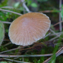 | Der erste mit Hut & Stiel! Und zwar völlig außer der Reihe, denn es ist Galerina laevis, also eine Art, die im Normalfall zu spätherbstlicher Zeit wächst. Warum sie sich heuer den April ausgesucht hat, bleibt schleierhaft. | |