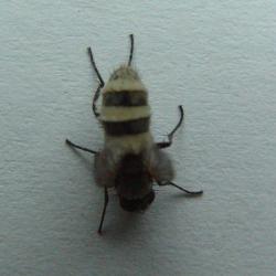 | Der totale Zufallsfund: Fliege mit Fliegentöter, erkennbar an der Querstreifung. Hinweis: Wespen verdanken ihre Streifung keinem Pilz und sind ja auch keine Fliegen. |