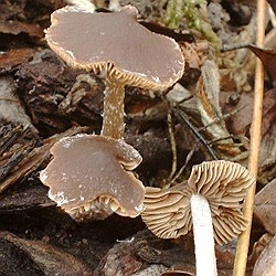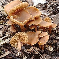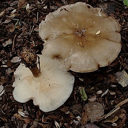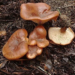 | Übrigens genauso wie für zwei, drei andere Vertreter der Gattung. Als Ausgleich ist der Fuchsige Röteltrichterling gut kenntlich - und trotzdem eine Überraschung. Wuchs im sogenannten Rosengarten - im gemulchten Beet. In einem ebensolchen gedieh auch Clitocybe metachroa, normalerweise nicht dort hingehörend. Aber schließlich kann ich es mir auch nicht aussuchen, wo ich wohne. | |