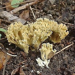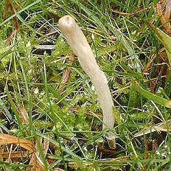 | Auch in den übrigen Bezirken des Gartens tummelten sich diverse Pilze. Gleich vor dem Haus eine ziemlich große Keule, Clavaria spec., die noch darauf wartet, scharf beäugt zu werden. Ach ja, Schnee gab es auch, drei Stunden lang am 28.12., und 10 Plusgrade zum Jahreswechsel. |
