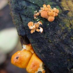 | Und es gab auch ein paar Samtfüße, hier an einem Fichtenstubben. Das Embryonalstadium zog sich wochenlang hin. Mal schauen, was im Januar draus wird... |