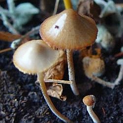 | Im kuscheligen Keller bzw. einem Geranientöpfchen machte sich derweil Conocybe rickenii breit. Die Art ist öfter in Blumenkübeln usw. zu Gast. Sehr höflich. |