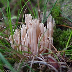 | Eine der meist benützten Floskeln ist "Zick-Zack-Sommer". Von einem Tag zum folgenden gibt es Temperatursprünge über das halbe Thermometer. Auch mal Regen, dann wieder keinen, jede Menge Wind dazu. Nur eilige Pilze haben eine Chance, wie diese Steife Koralle. | |