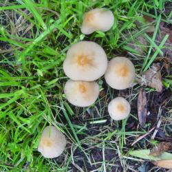 | Pilze waren kaum mit im Rennen. Vermutlich wurden die Mycelien kräftig durchgeköchelt. Auf gut bewässertem Rasen jedoch was Exclusives: Conocybe zeylanica. Zum zwoten Mal in Deutschland, ursprünglich beschrieben aus Sri Lanka. |
