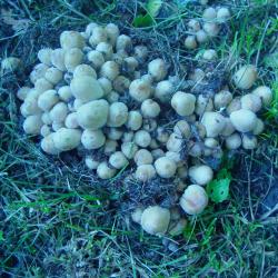 | Seltsames Wetter; manchmal mochte man fast den Ofen anwerfen, kurz drauf köchelte alles durch. Die ungestümsten Kracher machten zum Glück einen Bogen, aber auch die Pilze. Verlässlich ist der Zucker-Tintling, wie immer. Aber diesmal in gewaltigen Büscheln. | |