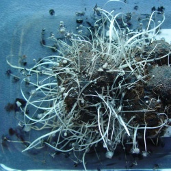 | Also mal wieder auf indoor-Zuchten ausweichen... Speziell auf Esel-Dung, welcher vor allem Coprinus radiatus in abenteuerlicher Menge produzierte. Erinnert stark an eine schlangenhaarige Medusa. |