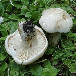 | Sogar ein paar dickere Brocken wagten sich noch hervor. Der eine oder andere Champignon, Rissige Ackerlinge, Kahle Kremplinge. Und, wie seit Jahren gewohnt, Maipilze am angestammten Ort. Leider nicht allzu viele, und von diesen konnten sich nur einige unter einer Hecke ducken. Über den Rest fiel der Rasentraktor her. |