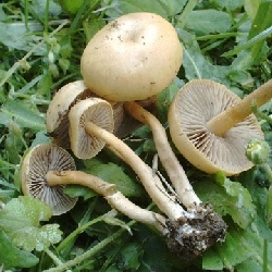 | Also bis zur Mitte ein Monat der Linge! Über einen davon war ich sehr erfreut: Coprinus ochraceolanatus oder callistoflavus (intermediäre Merkmale!) prangte im Büschel auf meiner Gartenwiese. Im letzten Jahr tat er das brav als verstreute Einzelpilzchen. | |
