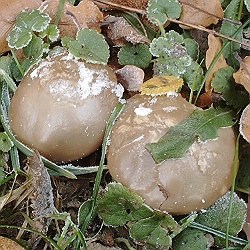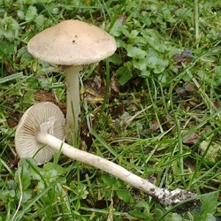 | Zuvor aber breitete sich auf dem Friedhof der lokalen Kreisstadt eine spätherbstliche Pilzflora aus: Erd-Ritterling Tricholoma terreum als Erstnachweis, diverse Täublinge und wundersame Hebeloma. Und etwas Rätselhaftes (Bild): Auch mit dem besten Willen gelang keine andere Bestimmung als Agrocybe praecox! Gibt es eigentlich Nachhinkende Ackerlinge? | |
