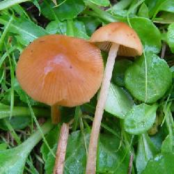 | Der Start war ja noch passabel, wenn man trockenes Wetter mag. Ein paar kleine Pilze (z. B. Conocybe, Bild) kamen mit Morgentau aus, größere hingegen blieben ausgesprochene Seltenheiten. Sogar die sonst um diese Zeit üblichen Dunkelscheibigen Fälblinge machten sich rar. | |