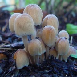 | Das erste Drittel war regnerisch, aber kühl. So richtig in die Puschen kam die Funga nicht. Um noch ein's draufzusetzen, gab es am 11.10. den ersten kräftigen Frost, und am 14.10. die ersten Schneeschauer. Wo im Frühjahr die Peziza klumpte (mal zum April zurückzappen) wuchs sie erneut, aber etwas dezenter. | |