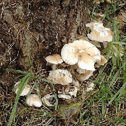 | Fast nichts bis zum letzten Viertel. Trocken, windig und viel Sonne. Unbeeindruckt davon war lediglich der Kahle Krempling, der nahezu flächendeckend fruktifizierte. Mit einem Jahr Unterbrechung erschien an seinem angestammten Pappelstumpf der Südliche Ackerling. Scheint übrigens eine Delikatesse für Wegschnecken zu sein. | |